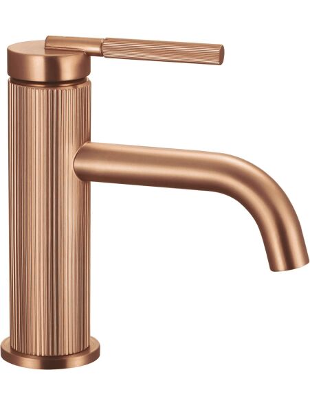Model wykonany został z solidnego mosiądzu i pokryty innowacyjną powłoką Pvd (Physical Vapour Deposition), która zapewnia kilkunastokrotnie wyższą odporność na ścieranie i zarysowania niż tradycyjne metody wykończenia. Powierzchnia w kolorze miedzi szczotkowanej nie tylko prezentuje się niezwykle elegancko, ale jest łatwa w czyszczeniu.