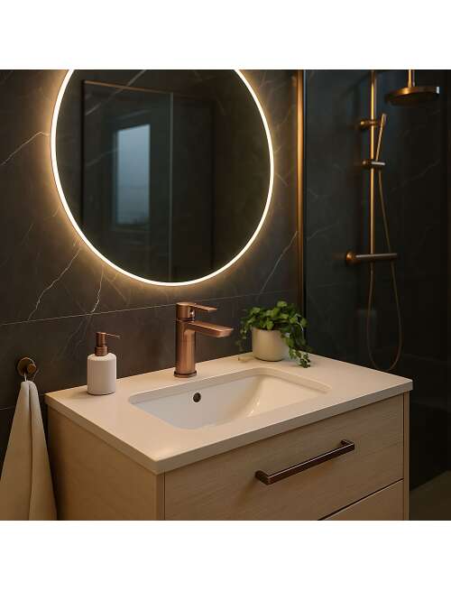 Prezentujemy Państwu piękną, niezwykle funkcjonalną i nowoczesną baterię. Jest to produkt, który w doskonały sposób wypełni Państwa przestrzeń łazienkową zachowując nienaganny wygląd i estetykę wnętrza. Bateria jest przystosowana do montażu na umywalce. Została wykonana z mosiądzu pokrytego powłoką galwaniczną w kolorze szczotkowanej miedzi w technologii Pvc. Dzięki specjalnej fazie produkcji jest trwała i łatwa w utrzymaniu czystości. Trwała powłoka naniesiona w technologii Pvd nie tylko zapewnia odporność na ścieranie i korozję, ale również gwarantuje estetyczny wygląd przez długi czas. Wbudowany perlator pozwala ograniczyć zużycie wody, a ceramiczna głowica zapewnia płynną regulację strumienia i temperatury.