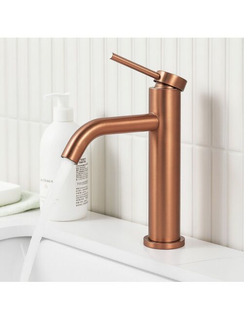 Model wykonany został z trwałego mosiądzu i pokryty nowoczesną powłoką Pvd (Physical Vapour Deposition). Technologia ta znacząco zwiększa odporność powierzchni na zarysowania i uszkodzenia mechaniczne, jednocześnie gwarantując długotrwałe zachowanie intensywnego koloru miedzi szczotkowanej. Dzięki temu bateria nie tylko pięknie się prezentuje, ale także pozostaje łatwa w czyszczeniu i odporna na działanie wilgoci.
