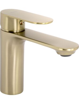 Bateria umywalkowa Drop w wykończeniu złotym szczotkowanym to propozycja dla osób ceniących elegancję i nowoczesny styl w łazience. Jej geometryczna forma i subtelne wykończenie szczotkowanego złota sprawiają, że doskonale komponuje się zarówno z klasycznymi, jak i designerskimi wnętrzami.