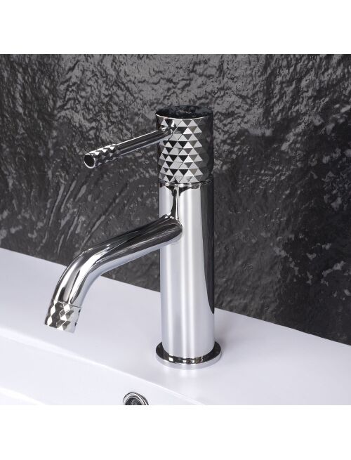 Niezwykle trwała i funkcjonalna bateria umywalkowa wykonania z najwyższej jakości mosiądzu. Ten materiał zapewnia pełną niezawodność i gwarantuje bezproblemowe działanie produktu przez długie lata. Głowica ceramiczna pozwoli na wykonanie nawet 500000 cykli otwierania i zamykania strumienia wody. Pokrycie korpusu baterii warstwami chromu nadaje baterii niepowtarzalny wygląd, a także zabezpiecza przed korozją i matowieniem. Piękny kształt baterii idealnie wpasuje się do każdego wystroju łazienki, a stylizowane na diament zdobienie z pewnością doda aranżacji szyku i elegancji. Powierzchnia została wykonana w technologii electroplating, co zapewnia wyjątkową odporność na ścieranie, uszkodzenia i trwałość przez lata . Wbudowany perlator pozwala ograniczyć zużycie wody, a ceramiczna głowica zapewnia płynną regulację strumienia i temperatury.