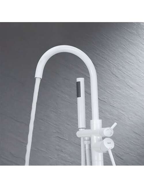 Bateria wannowa wolnostojąca Lungo w eleganckim kolorze białym, to doskonały wybór dla osób poszukujących funkcjonalnego i designerskiego rozwiązania do nowoczesnych łazienek. Jej minimalistyczna forma oraz wysoka jakość wykonania sprawiają, że idealnie komponuje się z wolnostojącymi wannami, podkreślając styl całej aranżacji.