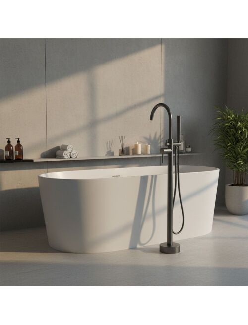 Bateria wannowa wolnostojąca Lungo w eleganckim tytanowym kolorze, to doskonały wybór dla osób poszukujących funkcjonalnego i designerskiego rozwiązania do nowoczesnych łazienek. Jej minimalistyczna forma oraz wysoka jakość wykonania sprawiają, że idealnie komponuje się z wolnostojącymi wannami, podkreślając styl całej aranżacji.