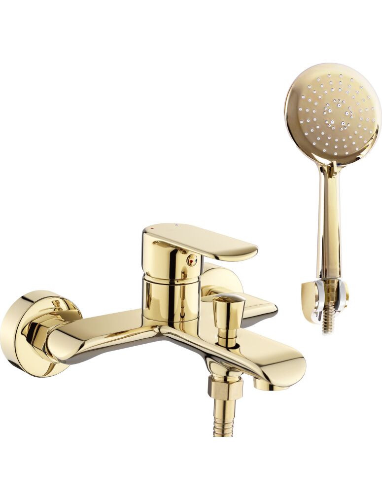 Prezentujemy Państwu piękną, niezwykle funkcjonalną i nowoczesną baterię wannową. Jest to produkt, który w doskonały sposób wypełni Państwa przestrzeń łazienkową zachowując nienaganny wygląd i estetykę wnętrza. Bateria jest przystosowana do montażu ściennego. Została wykonana z mosiądzu pokrytego potrójną złotą warstwą. Dzięki specjalnej fazie produkcji jest trwała i łatwa w utrzymaniu czystości.