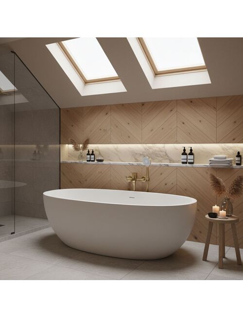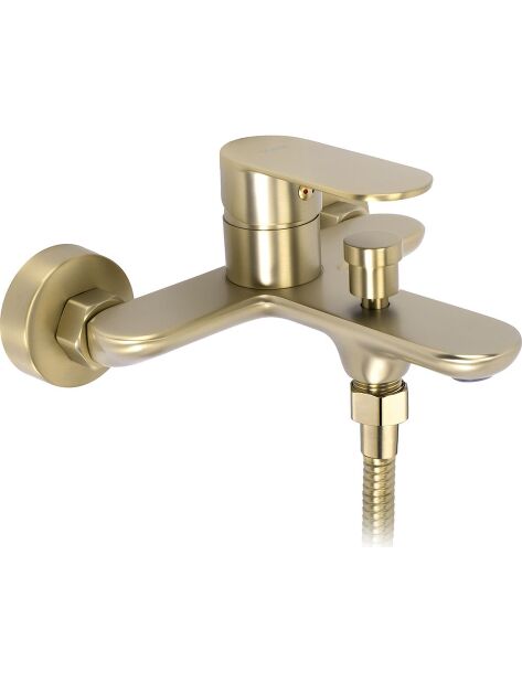 Nowoczesna i elegancka bateria wannowa Drop w kolorze złotym szczotkowanym to połączenie wyjątkowego designu i wysokiej funkcjonalności. Jej geometryczna forma oraz subtelne wykończenie sprawiają, że doskonale uzupełnia strefę kąpielową, podkreślając estetykę zarówno nowoczesnych, jak i klasycznych wnętrz. Korpus baterii został wykonany z wysokiej jakości mosiądzu, co gwarantuje trwałość i odporność na korozję. Powierzchnia w złotym szczotkowanym wykończeniu, uzyskana w procesie electroplating, cechuje się podwyższoną odpornością na ścieranie i zarysowania, zachowując nienaganny wygląd przez lata. Ceramiczna głowica umożliwia płynną regulację temperatury i strumienia wody, a solidna konstrukcja zapewnia wygodę i niezawodne działanie w codziennym użytkowaniu. |