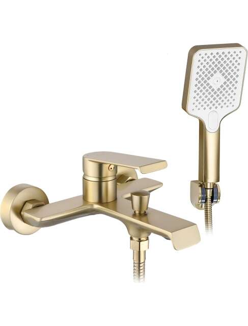 Prezentujemy Państwu piękną, niezwykle funkcjonalną i nowoczesną baterię wannową. Jest to produkt, który w doskonały sposób wypełni Państwa przestrzeń łazienkową zachowując nienaganny wygląd i estetykę wnętrza. Bateria jest przystosowana do montażu ściennego. Została wykonana z mosiądzu pokrytego potrójną złotą matową warstwą. Dzięki specjalnej fazie produkcji jest trwała i łatwa w utrzymaniu czystości. Bateria wannowa Rea Hass to model, który został wykonany z wysokiej jakości mosiądzu o matowym wykończeniu.