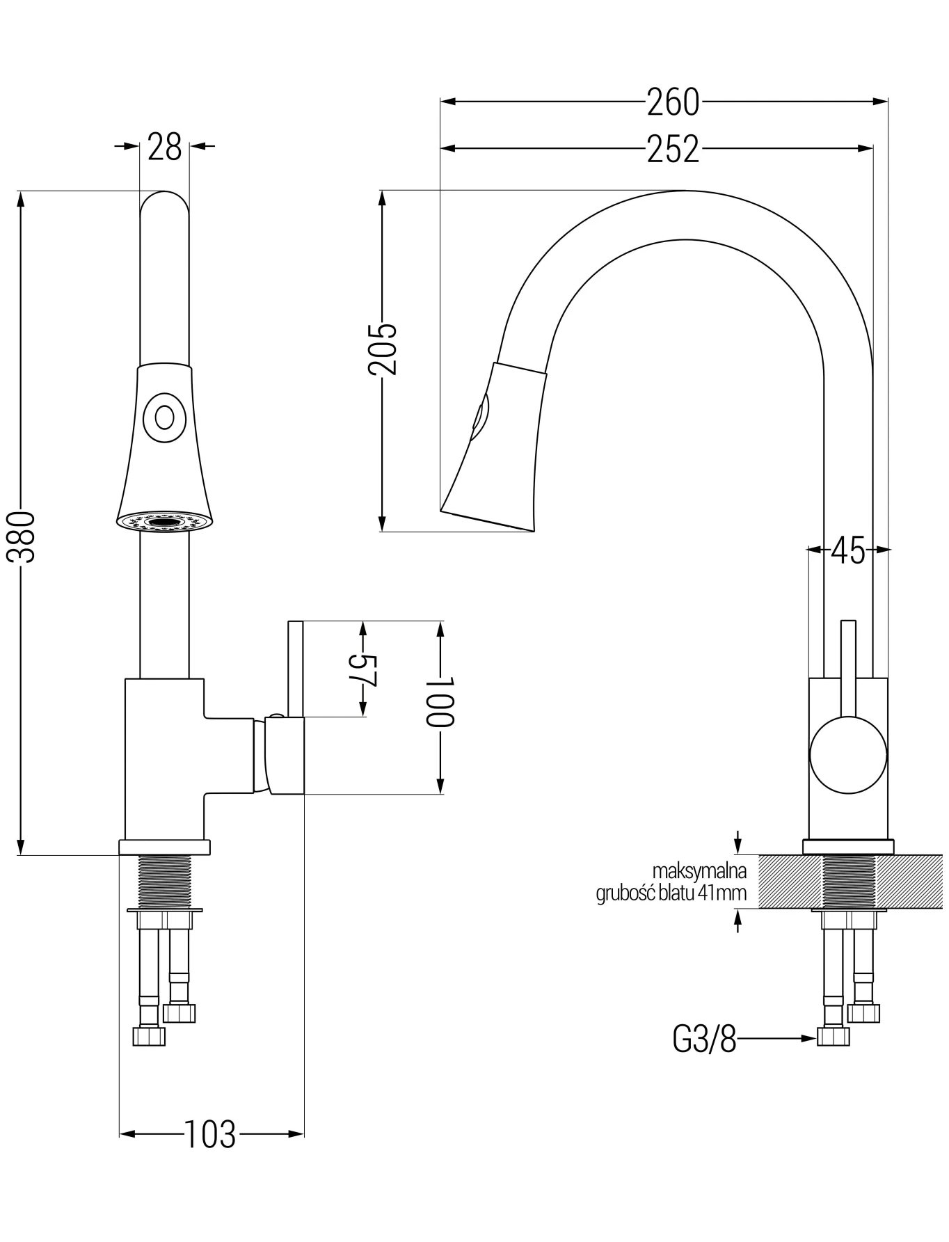 | Specifikācijas: Materiāls: misiņš Krāsa: pelēka Galva: keramika >Aerators: Jā Iztekas veids: Izvelkams Iztekas diapazons: 252 mm Augstums ›Д ‡: 380 mm Tips: vienas sviras |
