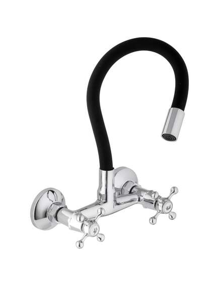 Mikseris izlietnei mehānisks, pie sienas stiprināms, divu sviru. Tam ir garš elastīgs snīpis ar formas atmiņu melnā krāsā, kas ļauj ne tikai ātri izskalot traukus vai izmazgāt izlietni, bet arī ērti piepildīt katlus ar ūdeni.