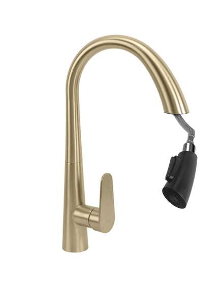 | Podstawa każdej funkcjonalnej kuchni to odpowiednia bateria kuchenna. Metalowy korpus, z którego wykonany jest ten produkt, to gwarancja trwałości i stabilności baterii. Pokrycie wytrzymałą powłoką nadaje baterii odporności na zanieczyszczenia, a złoty szczotkowany kolor niezwykłego wyglądu, który idealnie wpasuje się do wystroju Twojej kuchni.