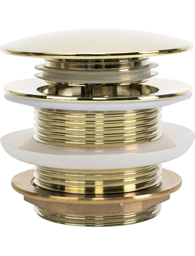 Prezentujemy korek klik-klak wannowy bez otworu przelewowego, wykonany z wysokiej jakości mosiądzu. To uniwersalne rozwiązanie, które pasuje do każdej wanny ze standardowym otworem odpływowym o średnicy 48 mm – zarówno do modeli wyposażonych w przelew, jak i tych bez przelewu.