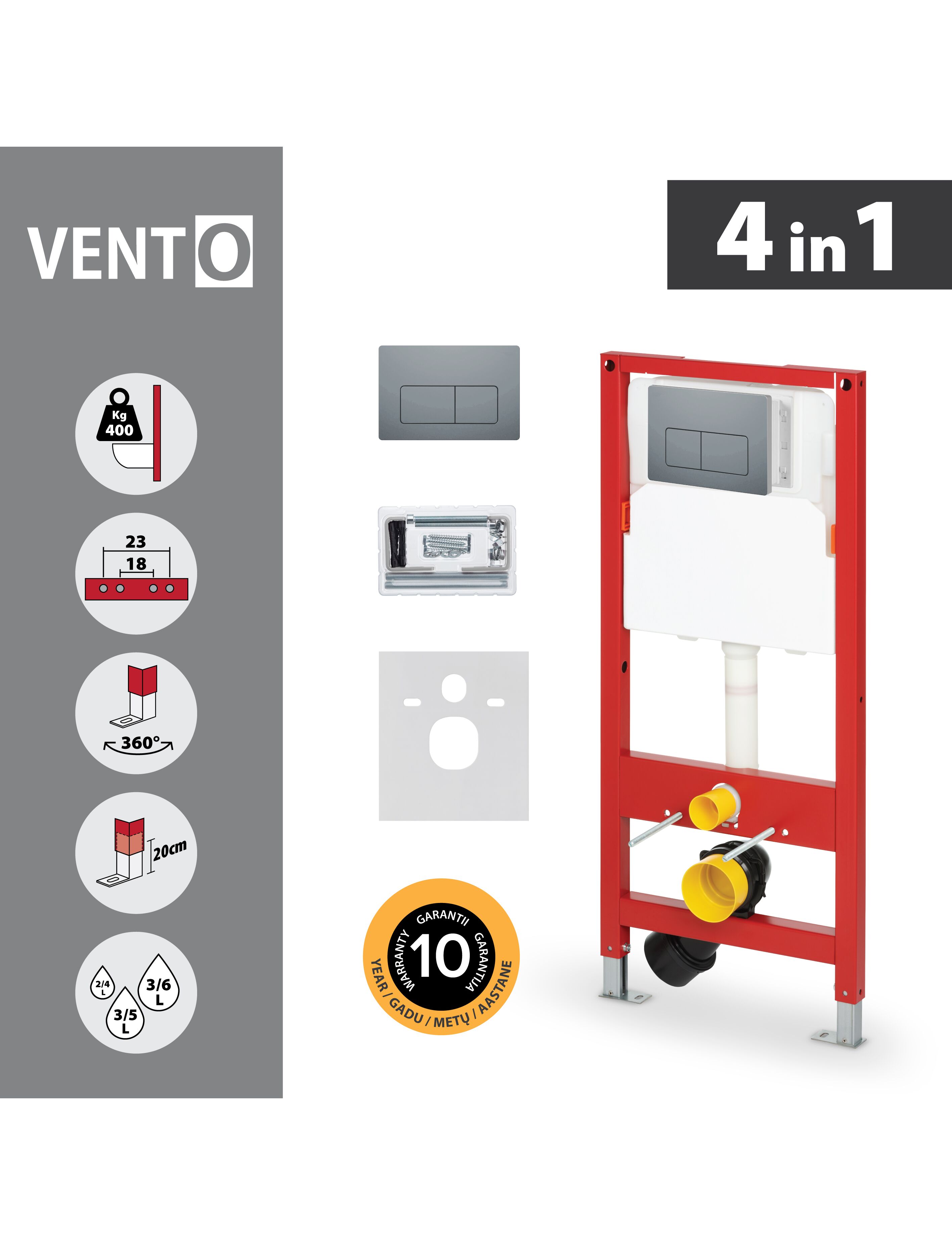 Pods: 1.Materiāls - keramika 2.Krāsa- balta 3.Bez apmales 4.Skalošanas sistēmas tips - Tornado 5.Poda vāks - Duroplast SoftClose Rāmis: 1.Dziļums 145-165mm 2.Kāju augstums regulējams no 0 līdz 200 mm 3.Kāju rotēšana 360 gr 4.Ar iebūvētu tvertni ar priekšējo mehānisko piedziņu un dubultu skalošanu, iepriekš iestatīta 6/3 l 5.2 izmēri caurumumiem poda pieskruvēšanai 6.Paredzēts svaram līdz 400kg 7.Trokšņu samazināšanas blīve komplektā 8.Taustiņš hromēts komplektā 9. Izvādes caurule komplektā 10. Montažas stiprinājumu komplekts Komplekts sastāv no 2 kastēm | ||||||||||||