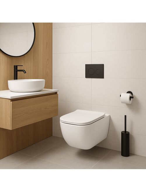 Misa WC Dexter to nowoczesne rozwiązanie stworzone z myślą o funkcjonalnych i estetycznych łazienkach. Model podwieszany, wykonany z trwałej ceramiki sanitarnej, charakteryzuje się bezkołnierzową konstrukcją, która ułatwia utrzymanie czystości i podnosi poziom higieny. Brak wewnętrznego rantu sprawia, że w misie nie gromadzi się brud ani bakterie, a czyszczenie przebiega szybciej i skuteczniej.
