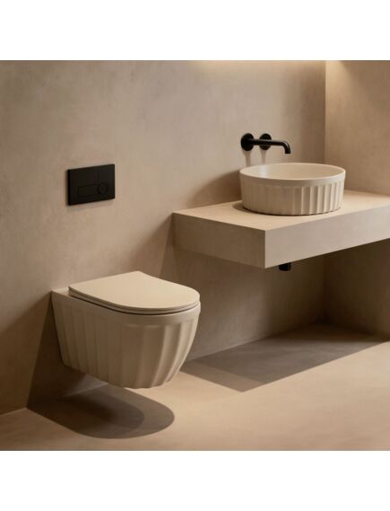 | Stwórz w swojej łazience atmosferę ciepła i przytulnego luksusu, wybierając nasz Zestaw Misa WC Duo + Umywalka nablatowa Rea Duo Caffe Latte Matt. To propozycja dla osób, które szukają alternatywy dla klasycznej bieli i pragną wnętrza utrzymanego w modnych barwach ziemi. Połączenie subtelnego beżu z nowoczesną formą sprawia, że ten komplet ceramiki staje się nie tylko elementem wyposażenia, ale prawdziwą dekoracją przestrzeni kąpielowej.Nasz zestaw ceramiki w odcieniu Caffe Latte oferuje szeroką gamę korzyści:Odcień Caffe Latte Matt – ciepły, beżowy kolor wprowadza harmonię i doskonale komponuje się z drewnem, kamieniem czy złotą armaturą.Ryflowana struktura – pionowe żłobienia nadają ceramice unikalnego charakteru i trójwymiarowej głębi.Wysokogatunkowa ceramika sanitarna – materiał odporny na odbarwienia i zarysowania, zapewniający nienaganny wygląd przez lata.Misa wisząca – nowoczesny sposób montażu ułatwia utrzymanie czystości podłogi i optycznie powiększa łazienkę.Umywalka nablatowa – elegancka i funkcjonalna, pozwala na wygodne zagospodarowanie blatu.Deska wolnoopadająca w zestawie – gwarantuje ciche zamykanie i bezpieczeństwo, podnosząc komfort codziennego użytkowania.