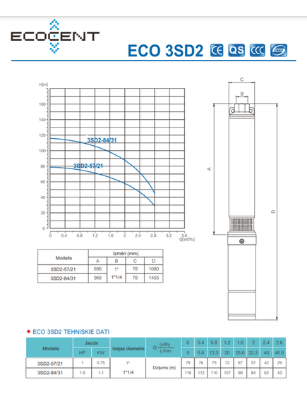 - Sūknējamā šķidruma maksimālā temperatūra: 35°