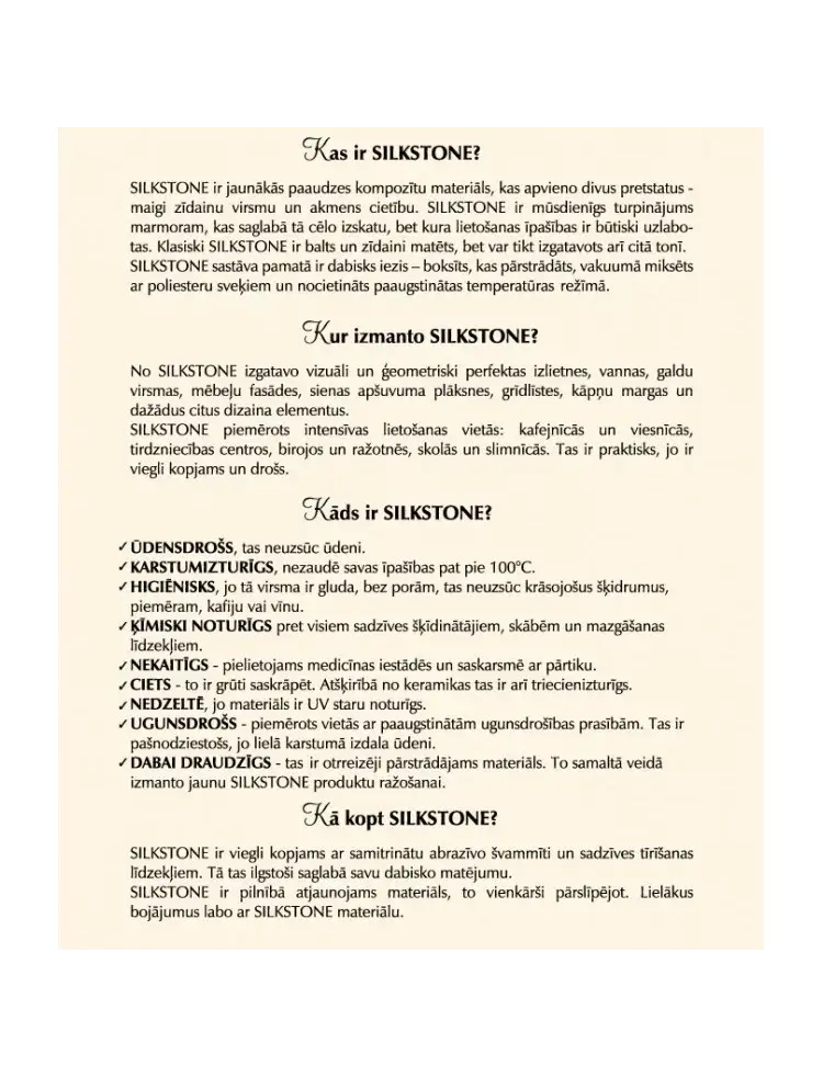 Krāsa Pelēks matētsPlatums (mm) 830Garums (mm) 1945Materiāls Silkstone