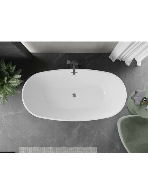 Mexen Eris to elegancka wanna wolnostojąca o wymiarach 180 x 95 cm, wykonana z akrylu sanitarnego, zapewniającego trwałość i łatwość czyszczenia. Jej owalny kształt oraz kolor biały z czarnymi akcentami dodają nowoczesnego charakteru każdej łazience. Wykończenie w odcieniu gun gray szczotkowanym i odpływ na środku to dodatkowe atuty, które podnoszą funkcjonalność. Wanna jest odporna na matowienie i promieniowanie UV, co sprawia, że zachowa swój wyjątkowy wygląd na dłużej.