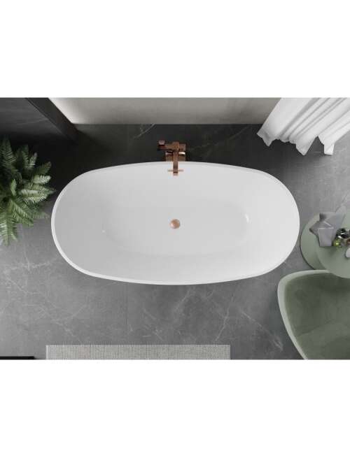 Mexen Eris wanna wolnostojąca 180 x 95 cm, biała/czarna, przelew miedź szczotkowana - 53441809575-65