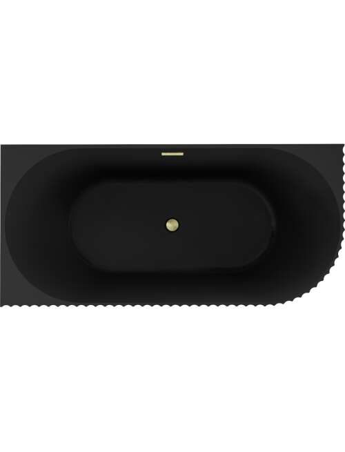 Mexen Gia wanna wolnostojąca narożna ryflowana lewa 150 x 75 cm, czarna mat, przelew złoty szczotkowany - 52701507571L-55