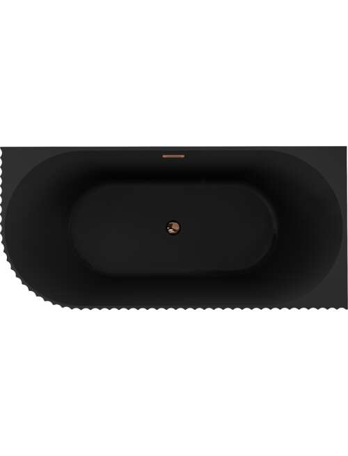 Specyfikacja produktu:Rozmiar: 150 x 75 cm Wysokość: 58 cm Głębokość: 45,5 cm Montaż: Narożna, Prawa Materiał: Akryl sanitarny Kolor: Czarny mat Wykończenie: Różowe złoto Struktura: Ryflowana Otwór przelewowy: Tak Otwór na baterie: Nie W komplecie syfon oraz korek klik klak Odporność na matowienie i promienie uv |