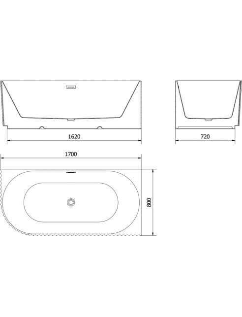 Mexen Gia wanna wolnostojąca narożna ryflowana prawa 170 x 80 cm, biała połysk, przelew biały - 52701708000P-20