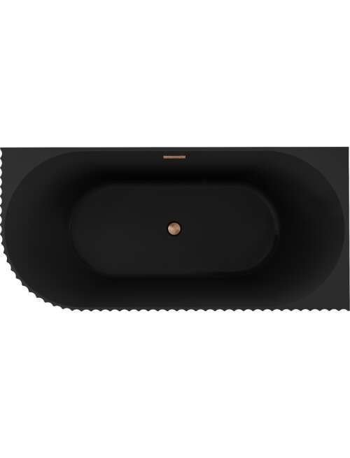 Specyfikacja produktu:Rozmiar: 170 x 80 cm Wysokość: 58 cm Głębokość: 45,5 cm Montaż: Narożna, Prawa Materiał: Akryl sanitarny Kolor: Czarny mat Wykończenie: Miedź szczotkowana Struktura: Ryflowana Otwór przelewowy: Tak Otwór na baterie: Nie W komplecie syfon oraz korek klik klak Odporność na matowienie i promienie uv |