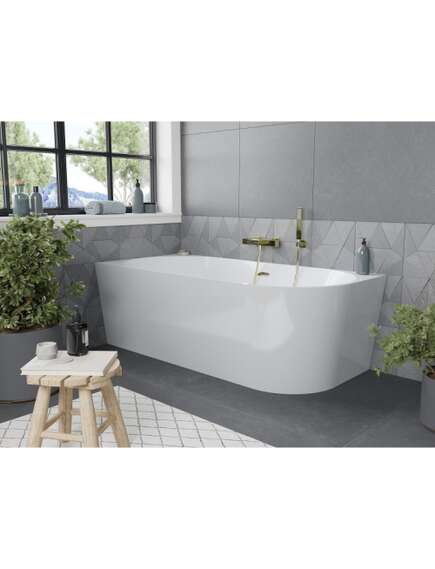 Specyfikacja produktu:Rozmiar: 140 x 75 cm Wysokość: 58 cm Głębokość: 42,5 cm Montaż: Narożna, Lewa Materiał: Akryl sanitarny Kolor: Biały Wykończenie: Złoty Otwór przelewowy. Tak Otwór na baterie: Nie W komplecie syfon oraz korek klik klak Odporność na matowienie i promienie uv |