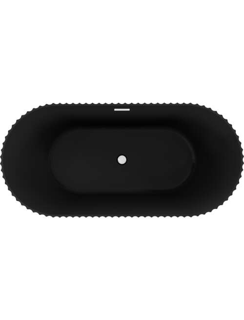 Specyfikacja produktu:Rozmiar: 150 x 75 cm Wysokość: 58 cm Głębokość: 45,5 cm Montaż: Wolnostojąca Materiał: Akryl sanitarny Kolor: Czarny mat Wykończenie: Biały Struktura: Ryflowana Otwór przelewowy: Tak Otwór na baterie: Nie W komplecie syfon oraz korek klik klak Odporność na matowienie i promienie uv |