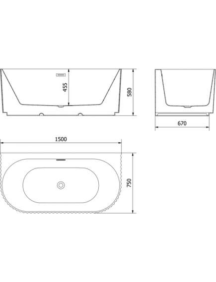 Mexen Sella wanna wolnostojąca przyścienna ryflowana 150 x 75 cm, biała mat, przelew czarny - 52711507501-70