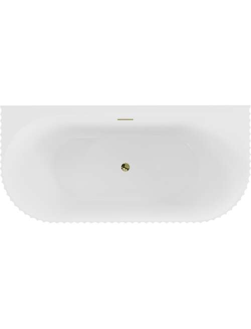 Mexen Sella wanna wolnostojąca przyścienna ryflowana 150 x 75 cm, biała połysk, przelew złoty - 52711507500-50