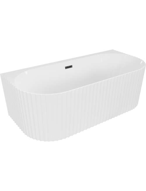 Mexen Sella wanna wolnostojąca przyścienna ryflowana 170 x 80 cm, biała połysk, przelew czarny - 52711708000-70