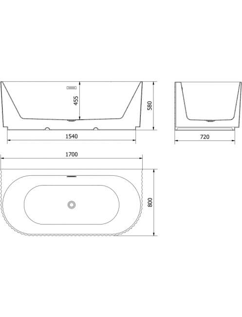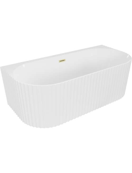 Mexen Sella wanna wolnostojąca przyścienna ryflowana 170 x 80 cm, biała połysk, przelew złoty szczotkowany - 52711708000-55