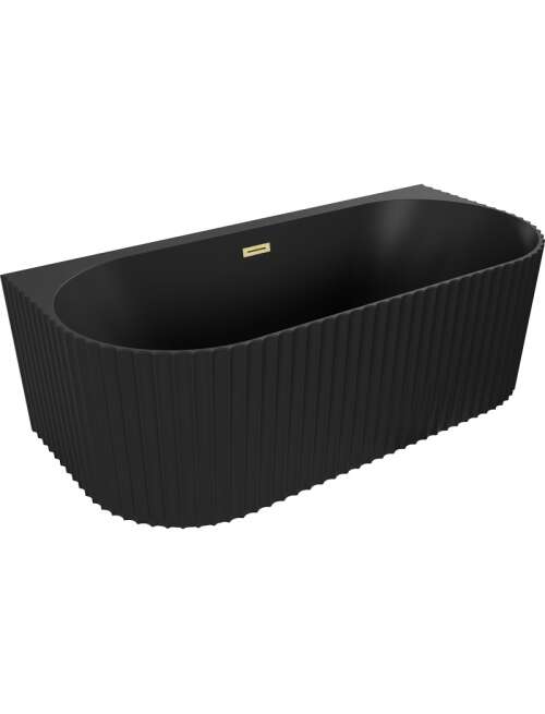 Mexen Sella wanna wolnostojąca przyścienna ryflowana 170 x 80 cm, czarna mat, przelew złoty szczotkowany - 52711708071-55