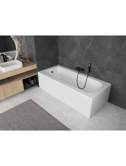 Specyfikacja produktu:Rozmiar: 170 x 80 cm Materiał: Akryl sanitarny Kolor: Biały Typ: Prostokątna / Uniwersalna Pojemność: 190 l W komplecie regulowane nóżki Odporność na matowienie i promienie uv Obudowa: 170 cm (panel przedni), 80 cm (panel boczny) |