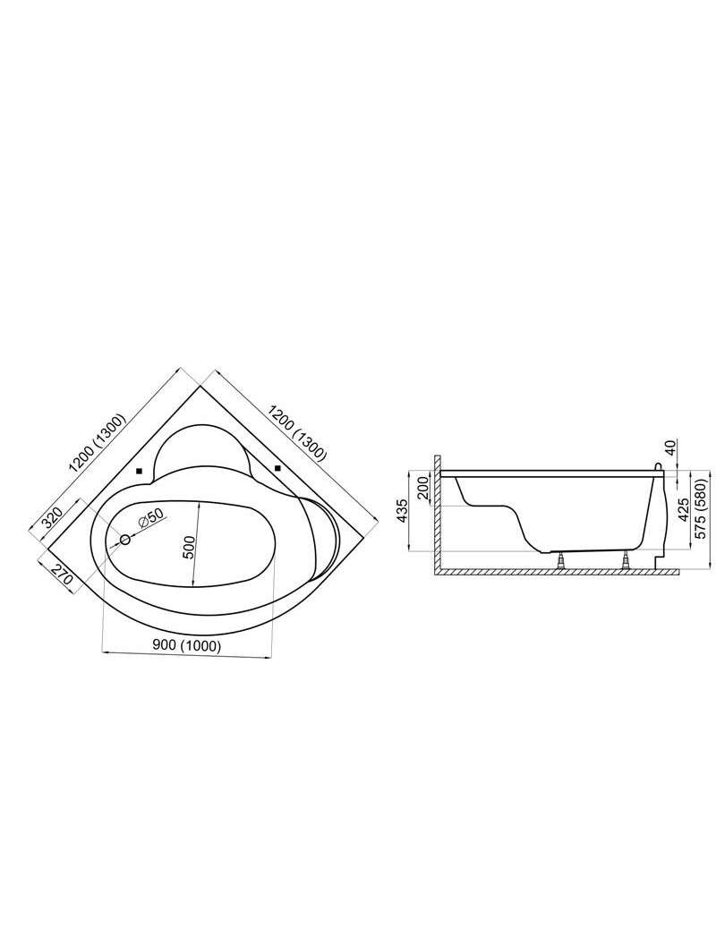 POLIMAT Stūra vanna STANDARD 2 1400x1400 mm.