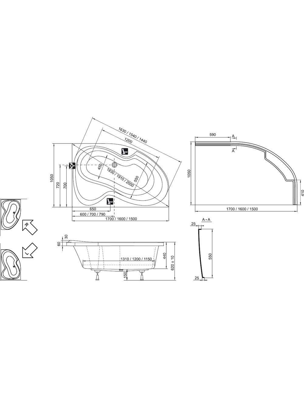 Vannas izmērs (cm) 160 x 105