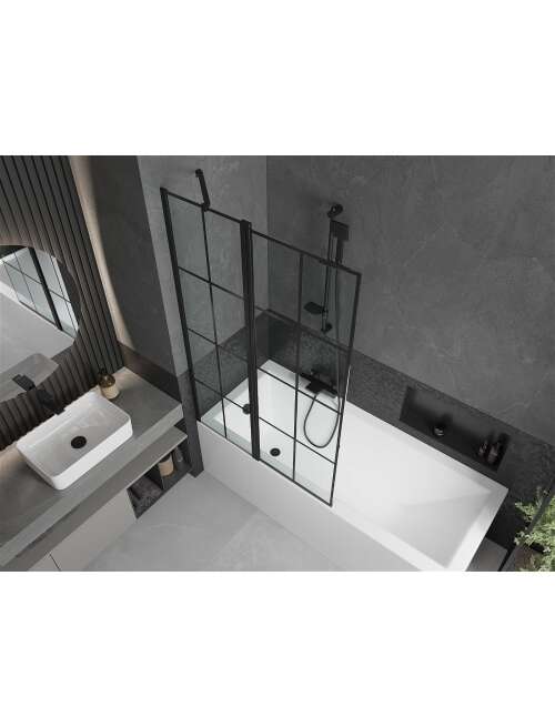Mexen Flip parawan nawannowy 1-skrzydłowy 100 x 150 cm, czarny wzór, czarny - 894-100-101-70-77