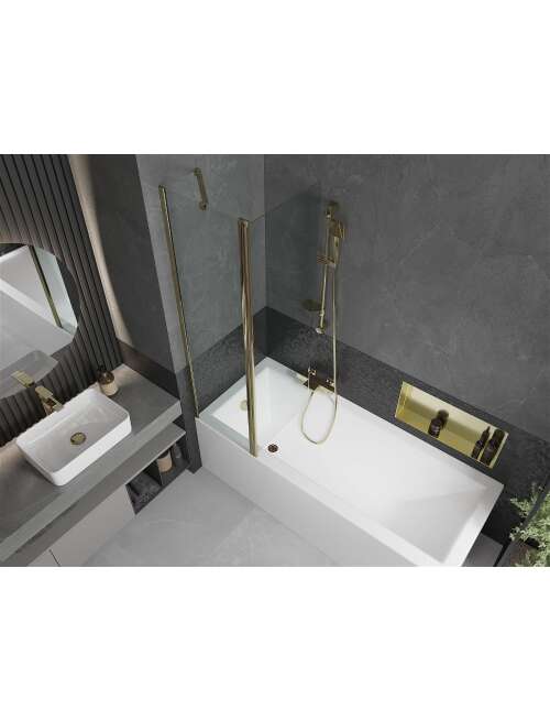 Mexen Flip parawan nawannowy 1-skrzydłowy 100 x 150 cm, transparent, złoty - 894-100-101-50-00