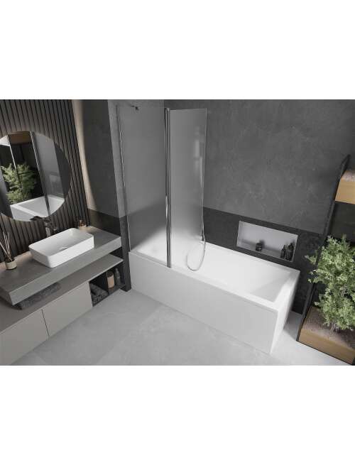 Dane techniczne: Szerokość: 120 cm Wysokość: 150 cm Rodzaj 1-skrzydłowy Montaż: Uniwersalny Typ: Ruchomy Rodzaj szkła: Hartowane Kolor szkła: Szron Grubość szkła: 6 mm Wykończenie: Chrom Powłoka ułatwiająca czyszczenie Niwelacja nierówności ściany Komplet uszczelek odprowadzających wodę Parawan składa się z dwóch części ścianka stała oraz skrzydło ruchome |