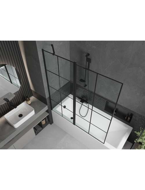 Mexen Flip parawan nawannowy 1-skrzydłowy 140 x 150 cm, czarny wzór, czarny - 894-140-101-70-77
