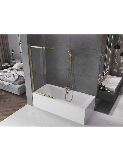 Dane techniczne: Szerokość: 85 cm Wysokość: 150 cm Rodzaj 2-skrzydłowy Montaż: Uniwersalny Typ: Ruchomy/Przesuwny Rodzaj szkła: Hartowane Kolor szkła: Transparentny Grubość szkła: 5 mm Wykończenie: Złoty Powłoka ułatwiająca czyszczenie Niwelacja nierówności ściany Komplet uszczelek odprowadzających wodę |