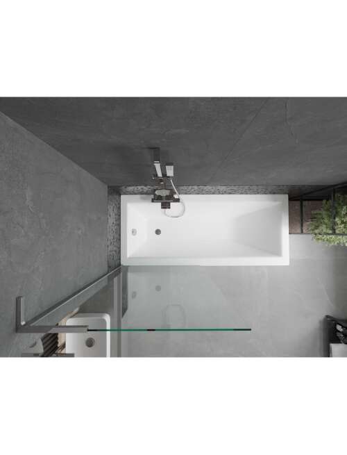 Dane techniczne: Szerokość: 80 cm Wysokość: 150 cm Rodzaj 1-skrzydłowy Montaż: Uniwersalny Typ: Stały Rodzaj szkła: Hartowane Kolor szkła: Transparent Grubość szkła: 6 mm Wykończenie: Chrom Stabilizator kątowy L: Stal nierdzewna Powłoka ułatwiająca czyszczenie Niwelacja nierówności ściany |