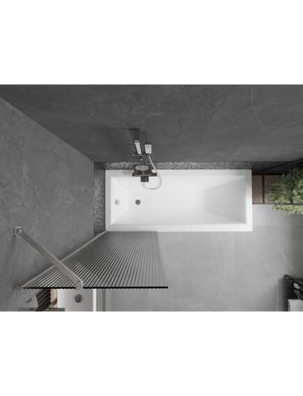 Dane techniczne: Szerokość: 60 cm Wysokość: 150 cm Rodzaj 1-skrzydłowy Montaż: Uniwersalny Typ: Stały Rodzaj szkła: Hartowane Kolor szkła: Prążki Grubość szkła: 6 mm Wykończenie: Nikiel szczotkowany Powłoka ułatwiająca czyszczenie Niwelacja nierówności ściany |