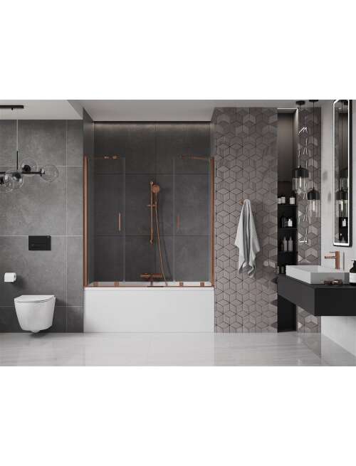 Mexen Velar Duo parawan nawannowy 2-skrzydłowy przesuwny 140 x 150 cm, transparent, różowe złoto - 896-140-000-02-60