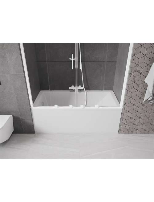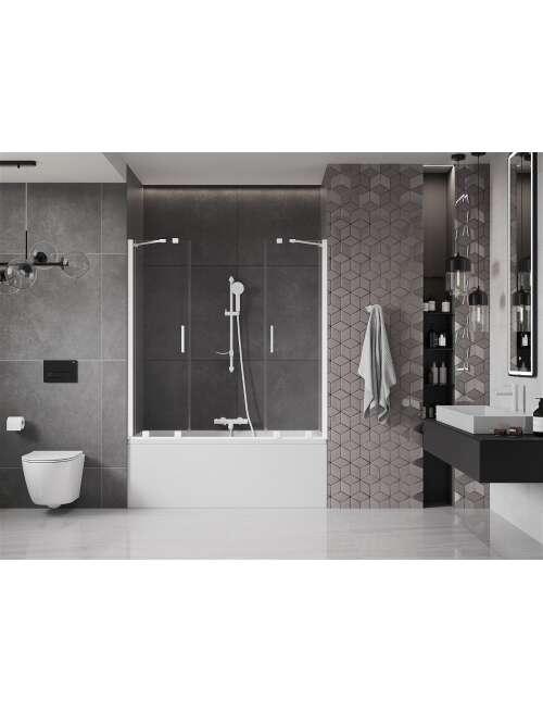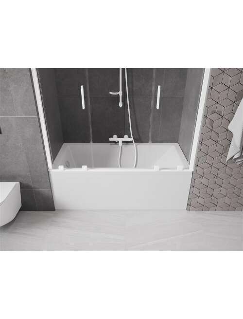 Dane techniczne: Szerokość: 150 cm Wysokość: 150 cm Rodzaj 2-skrzydłowy Montaż: Uniwersalny Typ: Ruchomy/Przesuwny Rodzaj szkła: Hartowane Kolor szkła: Transparentny Grubość szkła: 8 mm Wykończenie: Białe Powłoka ułatwiająca czyszczenie Niwelacja nierówności ściany Komplet uszczelek odprowadzających wodę |