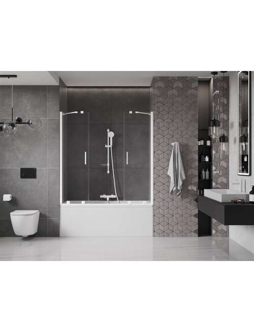 Mexen Velar Duo parawan nawannowy 2-skrzydłowy przesuwny 160 x 150 cm, transparent, biały - 896-160-000-02-20