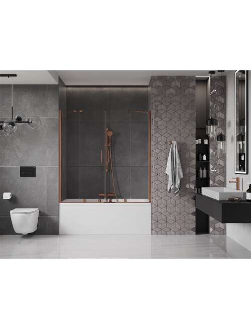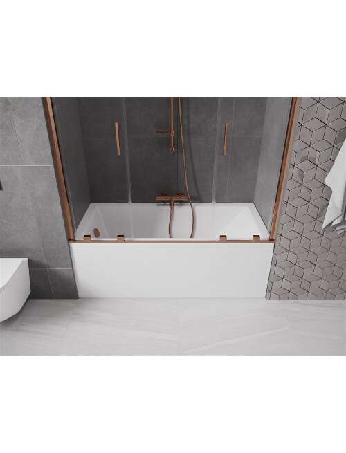 Dane techniczne: Szerokość: 160 cm Wysokość: 150 cm Rodzaj 2-skrzydłowy Montaż: Uniwersalny Typ: Ruchomy/Przesuwny Rodzaj szkła: Hartowane Kolor szkła: Transparentny Grubość szkła: 8 mm Wykończenie: Różowe złoto Powłoka ułatwiająca czyszczenie Niwelacja nierówności ściany Komplet uszczelek odprowadzających wodę |
