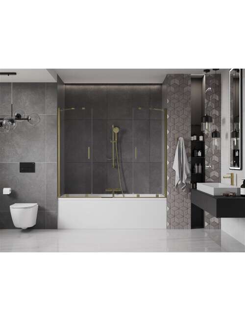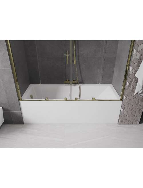 Dane techniczne: Szerokość: 170 cm Wysokość: 150 cm Rodzaj 2-skrzydłowy Montaż: Uniwersalny Typ: Ruchomy/Przesuwny Rodzaj szkła: Hartowane Kolor szkła: Transparentny Grubość szkła: 8 mm Wykończenie: Złote Powłoka ułatwiająca czyszczenie Niwelacja nierówności ściany Komplet uszczelek odprowadzających wodę |
