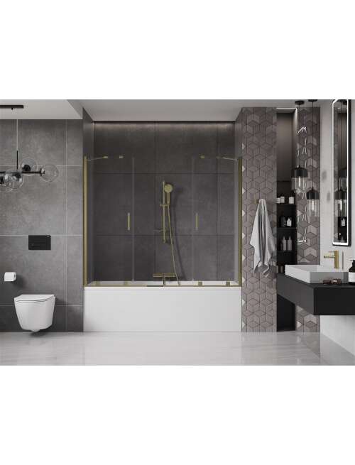 Dane techniczne: Szerokość: 180 cm Wysokość: 150 cm Rodzaj 2-skrzydłowy Montaż: Uniwersalny Typ: Ruchomy/Przesuwny Rodzaj szkła: Hartowane Kolor szkła: Transparentny Grubość szkła: 8 mm Wykończenie: Złote Powłoka ułatwiająca czyszczenie Niwelacja nierówności ściany Komplet uszczelek odprowadzających wodę |