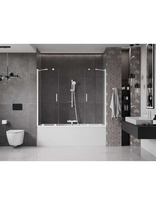 Mexen Velar Duo parawan nawannowy 2-skrzydłowy przesuwny 200 x 150 cm, transparent, biały - 896-200-000-02-20