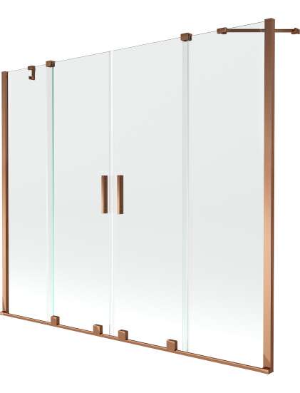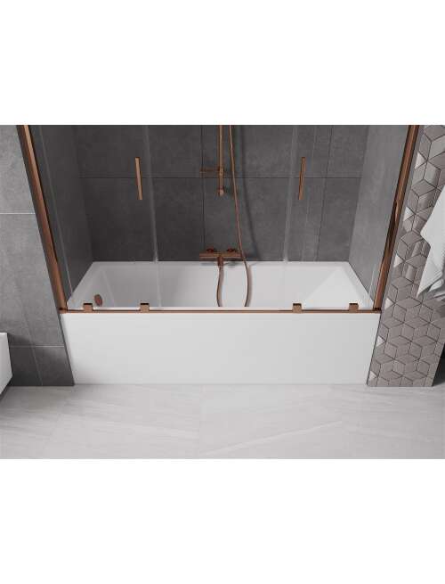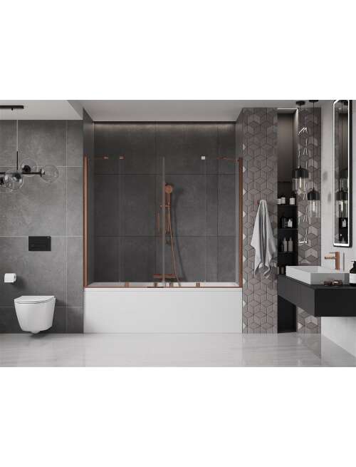 Mexen Velar Duo parawan nawannowy 2-skrzydłowy przesuwny 200 x 150 cm, transparent, różowe złoto - 896-200-000-02-60